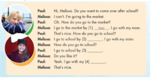Paul:Chào Melissa. Bạn có muốn qua nhà tớ chơi sau giờ học không?