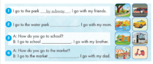 • I go to …. by ….. I go with …. (Mình đi đến …. bằng ….. Mình đi cùng ….)