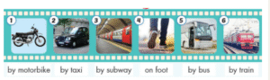Cách chơi: Trên bảng có treo các bức tranh minh họa những từ vựng liên quan đến cách thức di chuyển giao thông. Cô giáo sẽ đọc môt cụm từ và bạn tham gia trò chơi phải nhanh chóng chạy lên bảng avf tập tay vào bức tranh minh họa tương ứng.