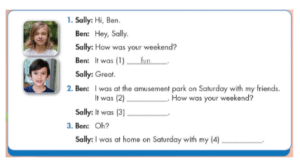 2. Ben: I was at the amusement park on Saturday with my friends.