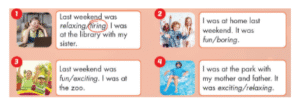 (Cuối tuần trước thật mệt mỏi. Tớ đã ở thư viện với chị của tớ.)