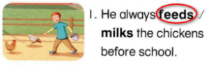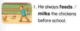 1,🔊 He always feeds the chickens before school.