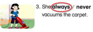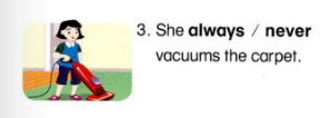 3,🔊 She always vacuums the carpet.
