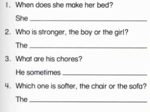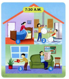 1, 🔊 When does she make her bed?