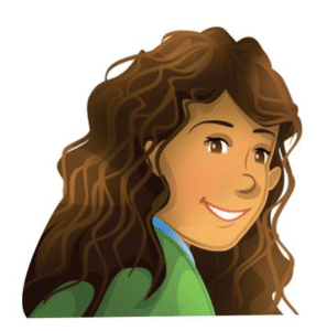 🔊 She’s the one with long, wavy, brown hair and glasses.- Là người có mái tóc dài gợn sóng dài màu nâu và đeo kính.