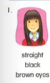 🔊 She has straight, black hair and brown eyes.- Cô ấy có mái tóc dài thẳng màu đen và mắt nâu.