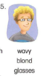 🔊 He has wavy, blond hair and glasses.- Anh ấy có mái tóc ngắn gơn sóng màu vàng và đeo kính