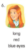 🔊 She has long, red hair and blue eyes.- Cô ấy có mái tóc dài thẳng màu vàng và mắt xanh dương.