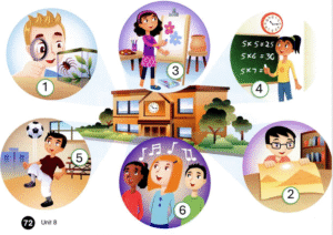 B, Listen and number.