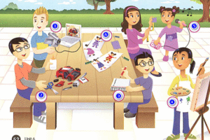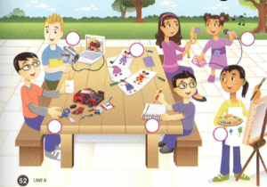 🔊 Then we can glue a picture for the story. – Thế là chúng ta có thể dán bức tranh cho câu truyện rồi.