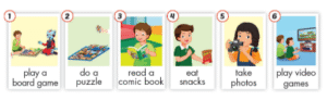 Cách chơi: Trên bảng cô giáo có gắn các hình ảnh miêu tả các hoạt động (đọc truyện, chụp ảnh, chơi trò chơi…) Các bạn sẽ có thời gian nhìn và ghi nhớ thứ tự của chúng, sau đó cô giáo lật để che lại bức ảnh và hỏi một con số bất kỳ. Các bạn cần đoán xem bức ảnh tương ứng với con số ấy nói về hoạt động gì.