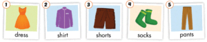 Ví dụ: Cô sẽ chọn thẻ ở vị trí số 3: “Three?”, các bạn sẽ đoán nhanh là đôi vớ: “socks”.
