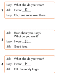 Jill: 🔊 How about you, Lucy? What do you want? (Còn cậu thì sao, Lucy? Cậu muốn gì?)