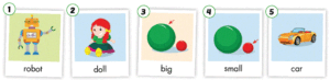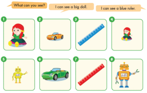 B:🔊 I can see a big doll. (Tôi có thể nhìn thấy một con búp bê to.)
