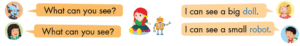 🔊 I can see a small robot. (Tôi có thể nhìn thấy một người máy nhỏ.)