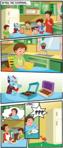 Mrs. Brown: 🔊 Sam! There is a cupcake in the kitchen for you. (Sam! Có một chiếc bánh nướng cho anh ở trong bếp đó.)