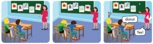3. Alfie: 🔊 There are six donuts. Yum! Yum! (Có sáu cái bánh vòng. Ngon quá!)