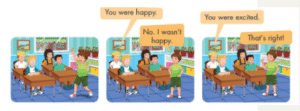 - No. I wasn’t happy. (Không phải, tớ không vui vẻ.)