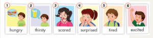 Cách chơi: Một bạn tham gia trò chơi đại diện lên dùng hành động để diễn tả lại cảm xúc. Các bạn còn lại sẽ đoán đó là cảm xúc gì. Sử dụng các cấu trúc đã học.