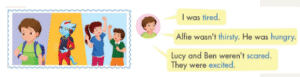 - Alfie wasn’t thirsty. He was hungry. (Alfie không khát nước. Anh ấy đói.)