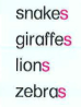Ngựa vằn, hươu cao cổ, sư tử và gấu.