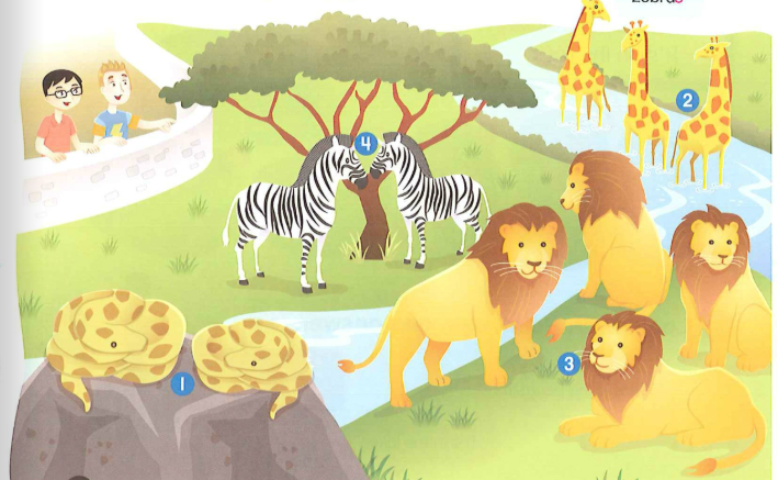 4. Ngựa vằn ở đâu? Chúng ở dưới gốc cây.
