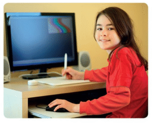 2.🔊 use the computer /juːz ðə kəmˈpjuː.tər/ (verb phrase): sử dụng máy tính