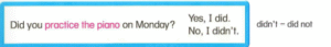 1. 🔊 Did you practice the piano on Monday?