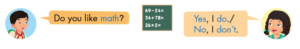 Alfie: 🔊 Math? (4) Yes, I do./No, I don’t. (Toán sao? Không, tớ không thích.)