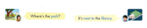 It’s next to the library. (Nó ở bên cạnh thư viện.)