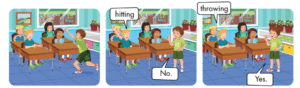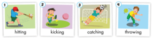 Một bạn sẽ dùng hành động để diễn tả bạn đang ném một vật gì đó, các bạn dưới lớp sẽ đoán: “hitting” hoặc “throwing”. Nếu đúng, người diễn tả sẽ nói “Yes.”, sai thì nói “No.”