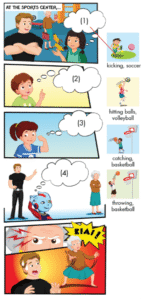 3. 🔊 I’m good at throwing. (Tôi giỏi về ném (bóng).)