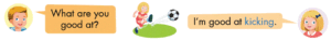 2. Câu trả lời: I’m good at kicking.
