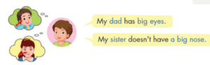My sister doesn’t have a big nose. (Chị gái tớ không có cái mũi to.)