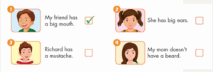 4. My mom doesn’t have a beard. (Mẹ tôi không có râu.)