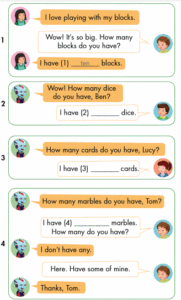 5. 🔊 How many blocks do you have? (Bạn có bao nhiêu cái đồ chơi hình khối?)