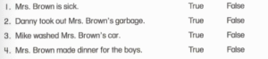 4. 🔊 Mrs. Brown made dinner for the boys. → False (She baked cookies for them.)