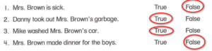3. 🔊 Mike washed Mrs. Brown’s car. → True