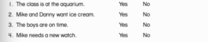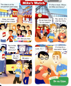 3, 🔊 The boys are on time. No (Vì: Mike và Danny đến trễ.)