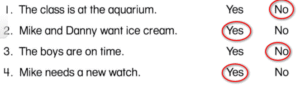 1, 🔊 The class is at the aquarium. No (Vì: Lớp học ở công viên giải trí, không phải thủy cung.)