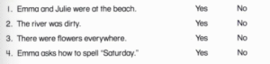 1. 🔊 Emma and Julie were at the beach. → No (Vì: Họ ở bờ sông, không phải bãi biển.)
