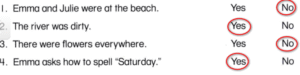 4. 🔊 Emma asks how to spell “Saturday.” → Yes