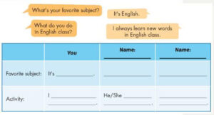 | 🔊 Favorite subject. Môn học yêu thích | 🔊 It’s English. Đó là môn tiếng anh | 🔊 It’s science. Nó là môn khoa học. | 🔊 It’s art. Nó là môn mỹ thuật. |