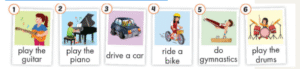 Alfie: Tớ có thể chơi đàn guitar.Tom có thể làm gì?