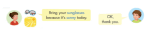 Mrs. Brown: Wait! Bring your sunglasses because it’s sunny today.
