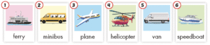 🔊 bike, 🔊 motorbike, 🔊 car, 🔊 coach, 🔊 boat, 🔊 ship