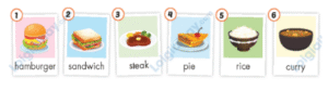 | bánh hamburger, bánh sandwich, bít tết | bánh, cơm, cà ri |