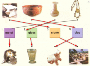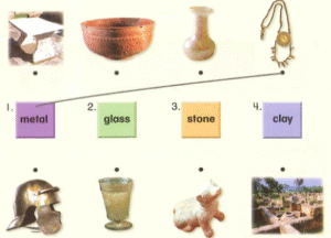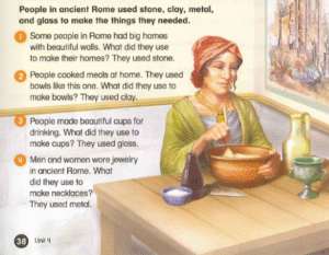 Bản dịch tiếng Việt: Người dân ở La Mã cổ đại sử dụng đá, đất sét, kim loại và thủy tinh để làm ra những vật dụng cần thiết.