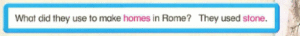 1. Một số người ở La Mã cổ đại có những ngôi nhà lớn với các bức tường đẹp. Họ dùng gì để xây nhà? Họ dùng đá.