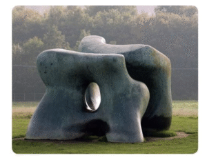 Sculptures are everywhere. Some look like people, and some look like shapes.